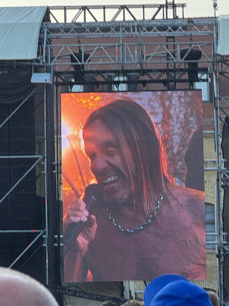 Anfang dieses Jahres lasen wir in einem Interview von 2023, dass Iggy Pops Arzt zu ihm gesagt habe: „Wenn Du in Rente gehst, verlierst Du den Verstand.“ Wir stellten uns den damals 75jährigen Punkrocker vor, wie er ruhelos in seinem Haus hin- und hertigerte und seine davon genervte Frau zu ihm sagt: „Mach endlich was! Nimm eine neue Platte auf oder geh auf Tour, es ist ja nicht zum Aushalten mit Dir!“ Und also ging Iggy auf Tour und in diesem Sommer sahen wir auch in Berlin ein Konzert angekündigt. Frau Reiserin plünderte wieder das Sparschwein, legte mit einem lieben Freundespaar zusammen und hatte ein weiteres Geschenk für HerrBert.