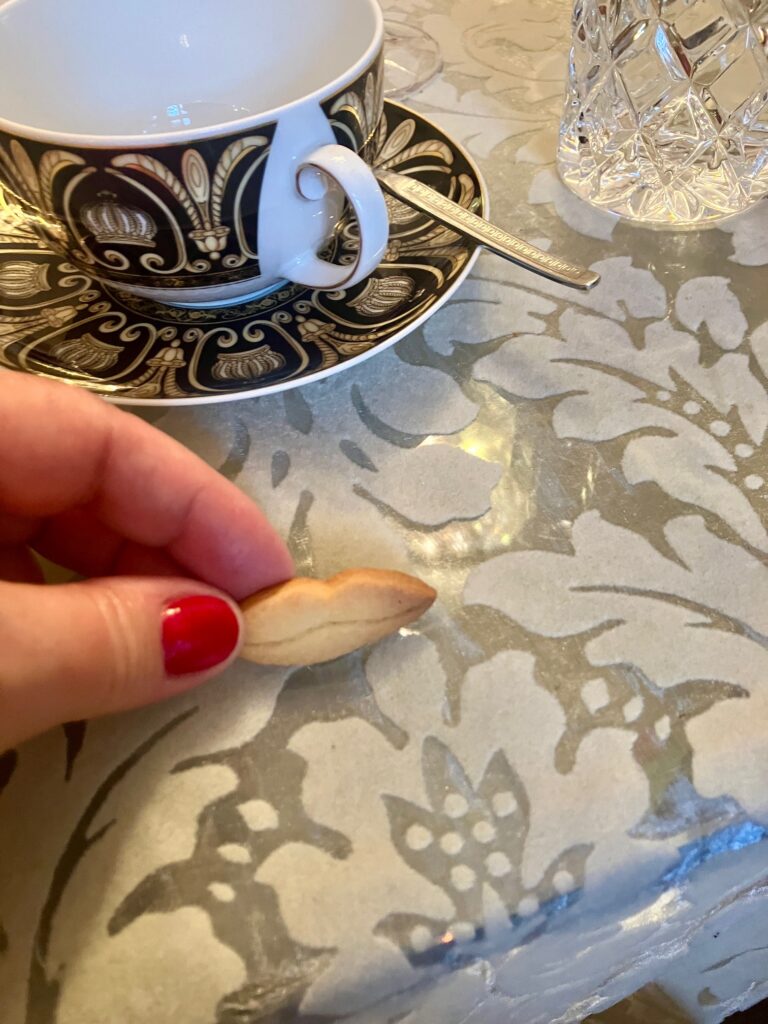 Zum Kaffee gibt es Plätzchen in Form von Hildegard Knefs Mund