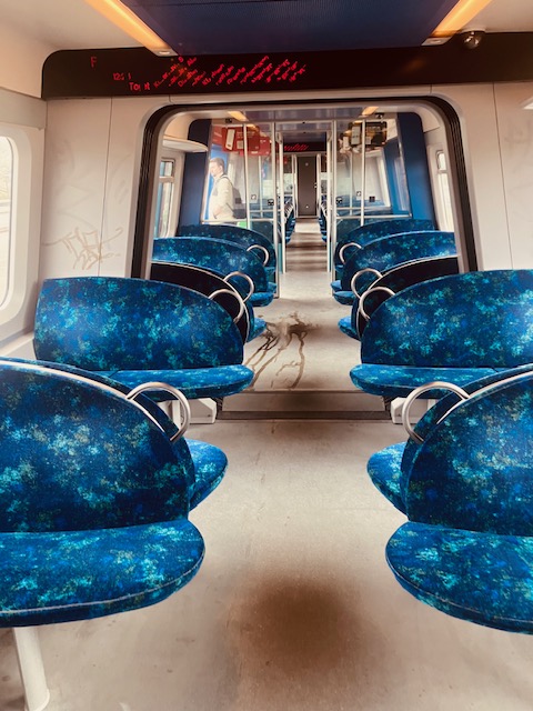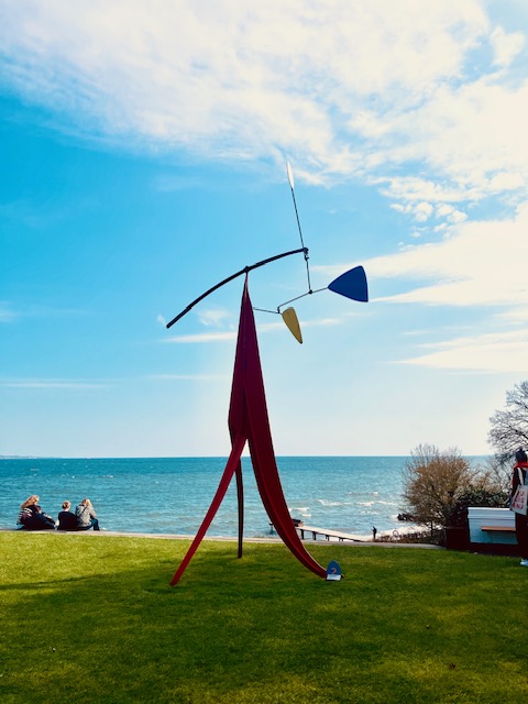 Heute schien schon wieder die Sonne! Mit einem Vorortszug, dessen Inneres äußerst interessant designt war, fuhren wir in Richtung Norden ins Umland von Kopenhagen. Dort gibt es ein Museum für Gegenwartskunst, das alle, die schon da waren, über den grünen Klee loben. Es heißt Louisiana, und mit dem gleichnamigen Bundesstaat der Vereinigten Staaten hat es rein gar nichts zu tun. „Es heißt so, weil der Gründer drei Frauen hatte, und die hießen alle Louise“, weiß HerrBert. Die Reiserin versucht, dieser Information einen tieferen Sinn abzugewinnen. „Die waren aber nacheinander“, präzisiert HerrBert. Aha. Die Sinnsuche wird dadurch leider nicht leichter.