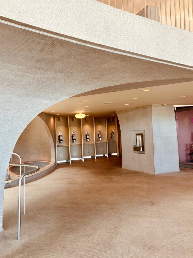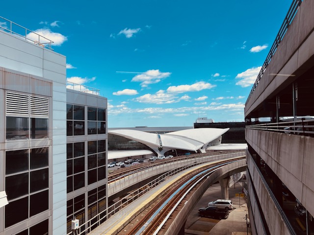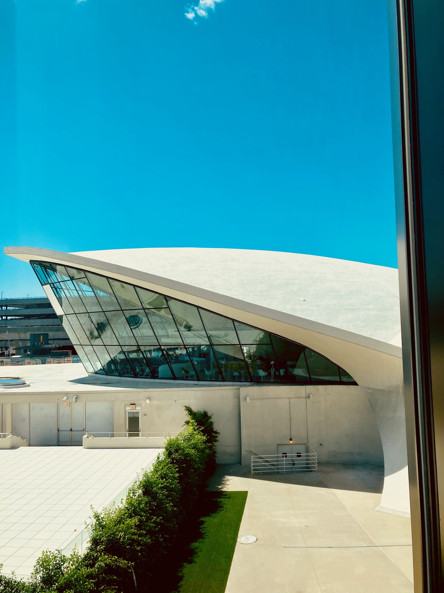 2001 wurde die TWA von American Airlines übernommen und das Gebäude seither nicht mehr für den Flugbetrieb genutzt. Der Besitzer, die gemeinsame Flughafenbehörde von New York und New Jersey, suchten nach Wegen, das denkmalgeschützte Gebäude wiederzubeleben. 2016 wurde es von einem der größten amerikanischen Hotelbetreiber gepachtet und 2019 als neues Luxushotel eröffnet – Denkmalschutz auf Amerikanisch. Dazu wurde es um zwei Gebäudeflügel ergänzt, die sich perfekt in den Originalentwurf einfügen. Heute steht das TWA-Hotel etwas eingequetscht zwischen Parkhaus und AirTrain-Haltestelle am kleinen Terminal 5, das vorwiegend von der Inlandsfluglinie JetBlue bespielt wird. Viel ist dort nicht los. Aber das vergisst man, sobald man sich zu dem Hotel durchgeschlagen hat. Ein Juwel und ein echter Tipp für alle, die am JFK ein paar Stunden Zeit zu vertrödeln haben.