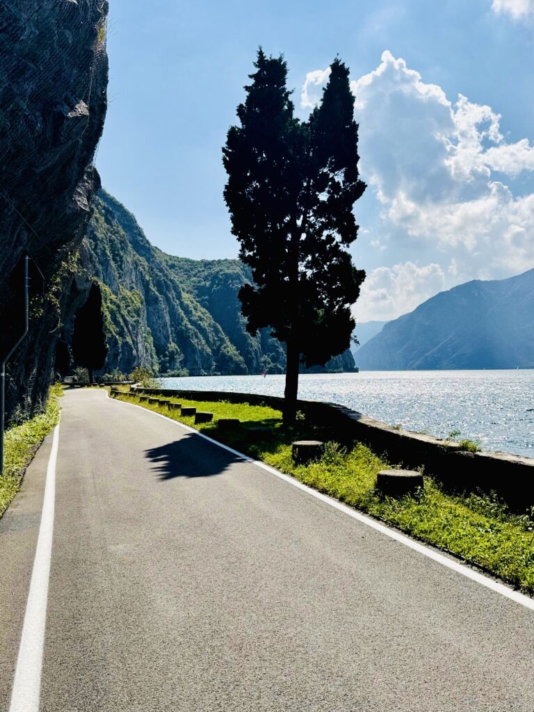 Für ein Mittagessen war es HerBert am zentralen Platz aber zu trubelig, und so macht er sich wieder auf den Weg. Aber jetzt deutlich entspannter. Kurze Zeit später, hinter dem Ort Pisogne, trennen sich Straße und Fahrradweg. Die Autos tauchten im Tunnel ab und die Fahrradfahrer befuhren die alte Uferstraße in wunderbarer Ruhe. Skater kamen HerrBert entgegen, man durchuhr kleine Tunnel. Die Welt könnte kaum schöner sein.