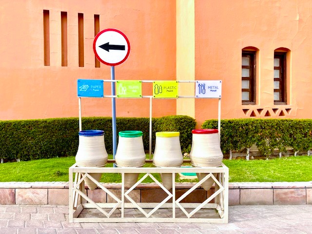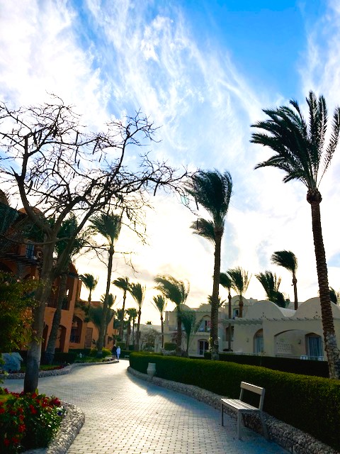 Das scheint bei den meisten Geschäften hier nicht möglich. Kaum, dass HerrBert und ich unseren bequemen Schlendertrab ein wenig drosseln, und mehr als eine Mikrosekunde unsere Blicke auf eine Auslage richten, springt sofort ein Händler von seinem Klappstuhl auf und lädt uns mit größtmöglichem Nachdruck ein, hereinzukommen. Mir würgt das jeden Anflug von Einkaufslaune und Geldausgebmodus – beides an sich in gesundem Maß vorhanden – ab. Ich möchte erst dann, wenn mich eine Ware interessiert, in ein Verkaufsgespräch verwickelt werden. Sicher eine kulturelle Prägung und eigentlich wäre es an mir, mich den örtlichen, orientalischen Gepflogenheiten anzupassen. Aber hier, in einem auf westliche Touristen ausgerichteten All-inclusive-Resort hoffe ich auf Nachsicht. Schon leicht gestresst von dem Gefühl, die übereuphorischen Verkäufer wie durch eine Lichtschranke mit jedem Schritt unnötig von ihrer Sitzruhe aufzuscheuchen, flüchte ich mich geradezu in den etwas entlegenen Winkel vor Mustafas Laden. HerrBert will eine rauchen und geht schon mal vor in Richtung Strand.