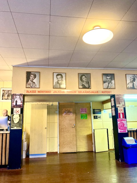 Die nächsten Tage waren traumhaft. Wir spazierten durch die Wälder, bestaunten die Ruhe und freuten uns über die freundlichen Rentiere, die immer mal wieder direkt vor unserem Fenster grasten und nichts als Frieden ausstrahlten. Gegen Nachmittag fuhren wir jeweils durch die Wälder in Richtung Sodankylä zum Filmfestival. Es residierte in der schmucklosen Schulanlage der äußerst schmucklosen Stadt und war doch magisch. Die Filmvorführungen fanden in Zirkuszelten statt, die auf dem Hof der Schule aufgebaut waren. Einige auch in der Aula und ein paar in dem historischen Kino namens „Lapinsuu“ an der Hauptstraße, das aussah, wie aus einem Film von Aki Kaurismäki. Der hatte das Filmfestival übrigens zusammen mit seinem Bruder und einem Kompagnon ins Leben gerufen.