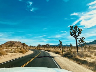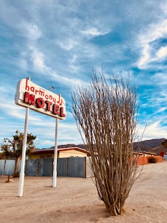 Die letzte Fahrt für heute führt zu unserem neuen Quartier, das wir uns gestern spontan noch gesichert haben. Heute übernachten wir nämlich im Harmony Motel. Es ist das Motel, vor dem sich Bono und seine U2 für ihr Album „The Joshua Tree“ fotografieren ließen.