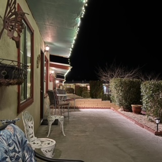 Trotzdem haben wir jetzt allmählich Hunger, und außerdem kündigt sich schon wieder die Dämmerung an. Wir fahren also zurück nach Twentynine Palms. Bevor wir uns zu unserem neuen Quartier aufmachen, folgen wir noch dem Lockruf des graubärtigen Barden, der in einer Art Biergarten auf der Steel Guitar melancholische Melodien spielt, während auf dem stummgeschalteten Bildschirm American Football übertragen wird. Das dazugehörige Lokal ist sowohl für sein lokales Bier als auch für seine Burger bekannt, und so gönnen wir uns beides.