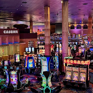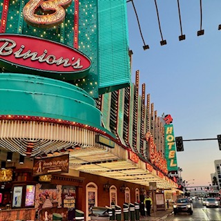 Wir steuern in eines der leicht angegilbten Casinos und stolpern erstmal mit großen Augen über den grell gemusterten Teppichboden zwischen blinkenden Spielautomaten herum, um schließlich im integrierten Steakhouse auf Beobachtungsposten zu gehen. Das Essen verläuft amerikanisch-pragmatisch, aber der Blick auf das Geschehen im Casino ist spannend. Paare, die sich hier womöglich zum ersten Date treffen, vielleicht auch die eine oder andere auf sehr kurze Zeit gebuchte Begleitung, ältere Paare, die sich hübsch gemacht haben, junge, gackernde Frauengruppen, Männergruppen, die ihnen hinterherblicken. Alles beleuchtet von den grell strahlenden Daddelmaschinen. Die Tische für Blackjack und Roulette stehen in anderen Teilen des Casinos. Klar ist aber, dass hier mit bescheidenen Einsätzen gespielt wird.