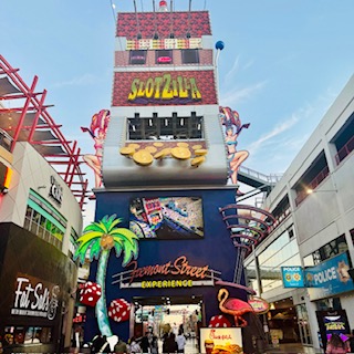 Die Fremont Street ist heute am Freitagabend rappelvoll. Die Wochenendtouristen sind da. Menschen in unterschiedlichen, aber noch halbwegs moderaten Stadien der Alkoholisierung, drängen sich unter dem grell blinkenden Dach, überall schallt Musik, vibriert die Luft. Sin City eben. Klar, dass da noch was gehen wird. An manchen Ecken stehen aufgetuffte, leicht bekleidete Showgirls und Stripper, die sich gegen ein paar Dollarscheine mit Touristen fotografieren lassen.