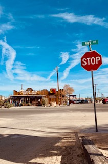 Aber das Ende kommt zeitig, um kurz nach 15 Uhr steht die Sonne schon deutlich tiefer, und um 16 Uhr beginnt jetzt im Winter die Dämmerung. Wir wollen die letzten Tagesstunden noch nutzen und fahren weiter nach Yucca Valley, um uns dort noch kurz umzusehen. Dieser Ort ist wesentlich größer und gleichzeitig gesichtsloser. Wir gucken uns nur kurz ein paar Trödelgeschäfte an und fahren dann zurück nach Joshua Tree in den Waschsalon.