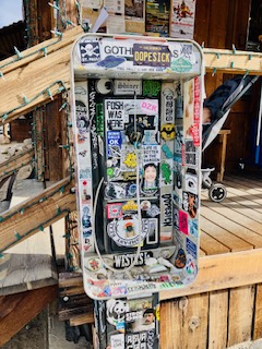 Die Einheimischen sind aus ihren Behausungen aufgetaucht, um sich zu treffen, auszutauschen, und wohl auch, um Jobs zu checken, Aufträge zu vergeben, irgendwelche Dinge zu regeln. Dabei sind sie so cool und abgerockt gleichzeitig. Nicht nur die Wüstenhaare und die Schluffklamotten, auch die Tiefenentspanntheit, die hier alle zeigen. Viele Geschäfte haben Regenbogenflaggen, jeder ist freundlich, niemand murrt oder drängelt. Die unaggressive Andersartigkeit von allem, wie wir es von zuhause kennen, ist umwerfend. „Hey Mann, wir sind in der Wüste, wen interessiert’s, wie du aussiehst und wer du woanders bist?“