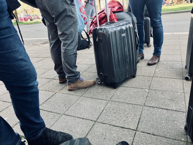 Davor standen wir nämlich am Scheideweg der Möglichkeiten. Unser überhitzter, uralter 1. Klasse-Wagen wurde trotz der MacGyver-Klimaanlagenlösung geräumt und zugesperrt. „Macht die DB immer so“, informierte uns die erfahrene Reisende, die jeden Monat auf dieser Strecke fährt. „Wenn die Klimaanlage ausfällt und jemand umkippt, befürchten die eine Klage, darum wird dann immer der Wagen geräumt“, meint sie noch. Na toll. Die Alternativen, die uns der dänische Zugbegleiter freundlich anbot, lauteten: In diesem Zug weiter bis Hamburg fahren, jetzt aber in der pickepackevollen 2. Klasse. „Sie werden dann stehen müssen“, sagt er freundlich. Vier Stunden lang. Oder wir verlassen jetzt gleich am nächsten Halt den Zug und warten dort auf den Bus, der irgendwann wahrscheinlich kommt und uns nach Hamburg mitnimmt. Dauert wahrscheinlich länger als vier Stunden wegen Verkehr, und nein, den Anschluss nach Berlin werden wir auf diese Weise „auf keinen Fall“ erreichen. Aber das ist auch so, wenn wir in diesem Zug bleiben. Der wird nämlich auch beachtlich verspätet ankommen.