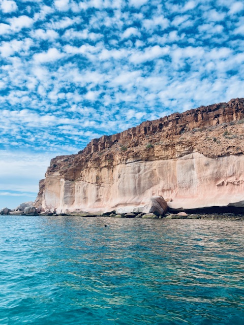 Heute, am Sonntag, stand für HerrBert dann ein sehnlich erwarteter Ausflug an: Mit dem Boot besuchten wir die Isla Espiritu Santo, die naturgeschützte Insel des Heiligen Geistes. Unterwegs waren mehrfache Stopps zum Schnorcheln angekündigt. Schon am Treffpunkt fragte HerrBert zum Erstaunen der Reiserin den Veranstalter, ob er seinen roten Besenstiel im Büro ablegen darf. Davor hatte der umtriebige Unternehmer wasserdichte Handyhüllen in den schönsten Neonfarben angeboten – und wir griffen zu. Ruckzuck sah HerrBert darum zumindest vorübergehend von seinem selbstgebastelten Selfiestick in Kombination mit der Unterwasserkamera ab, und beschloss, seine Seehundporträts mit dem Handy zu fotografieren.