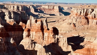 Außerdem befanden wir uns auf dem Gebiet der Navajo Nation, dem Reservat der größten Gruppe von Native Americans in den ganzen USA. Der Mann sah aus wie ein Native American. „Wollt ihr den Coal Mine Canyon sehen?“, fragte er freundlich. Wir bejahten und sagten, dass wir gerade von da kamen. „Ein magischer Platz“, sagte der Mann. „Ich wollte euch nur sagen, dass es einfacher ist, wenn ihr die Straße davor nehmt, dann könnt ihr fast direkt heranfahren. Hier hat jemand das Tor zugemacht, weil in letzter Zeit einige Leute kamen.“ Wir sagten, dass es für uns völlig okay war, das letzte Stück zu Fuß zu laufen und wir auch gar nicht mit unserem schweren Auto Spuren hinterlassen wollen. „Es ist ein magischer Platz“, wiederholte er noch einmal. „Früher haben die Bewohner hier Antilopen gejagt. Sie trieben sie zusammen und erlegten sie dann.“ Heute würden einzelne Familien Schafe im Canyon weiden. „Es ist also irgendwie noch wie früher, und irgendwie auch nicht“, sagte der Mann.